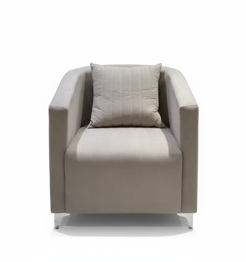 Every One Seater Sofa we offer is checked for a flawless fabric finish and structural integrity. The chrome legs are polished to a mirror shine to ensure they remain a standout feature of the design. Although the sofa looks incredibly soft and delicate, the underlying construction is professional and strong. Therefore, it offers the perfect mix of visual glamour and long-lasting strength. For instance, the integrated armrests are padded to provide extra comfort during extended periods of rest. It is truly a flagship product in our latest modern seating collection.