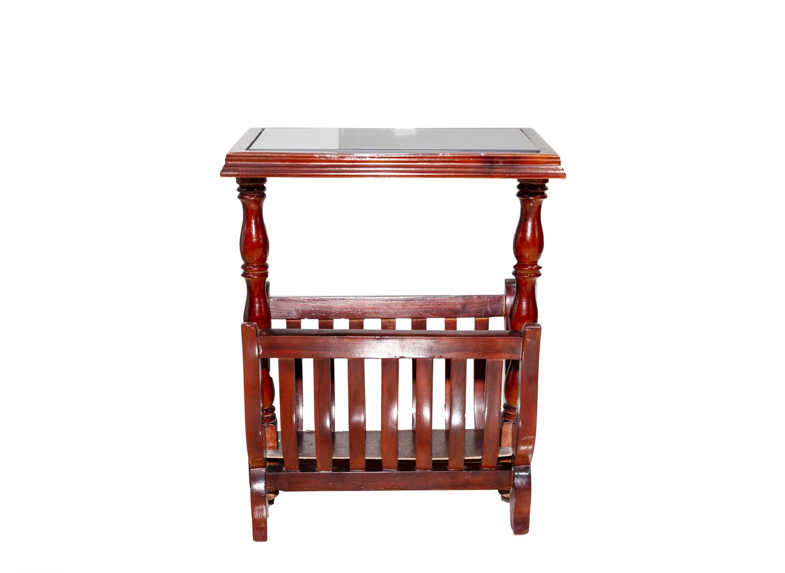 This elegant wooden side table combines functionality with classic design. Crafted from solid wood, it features a smooth tabletop and a built-in magazine rack for convenient storage. Its compact size makes it ideal as a sofa-side table, bedside table, or accent piece in any interior setting.
